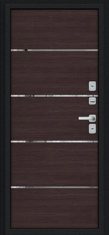 Надежная входная Дверь Браво Thermo Лайн/BChrome Букле черное/Wenge Melinga премиум класса по цене 47 295 руб. Большая толщина стали защитит от проникновения в ваш дом, квартиру или коттедж. Используется очень качественная фурнитура: замки, цилиндры, ручки, защелки. Покрытие и отделка двери изготовлено под внимательным контролем производителя. Дверь имеет долгий срок службы и гарантию.